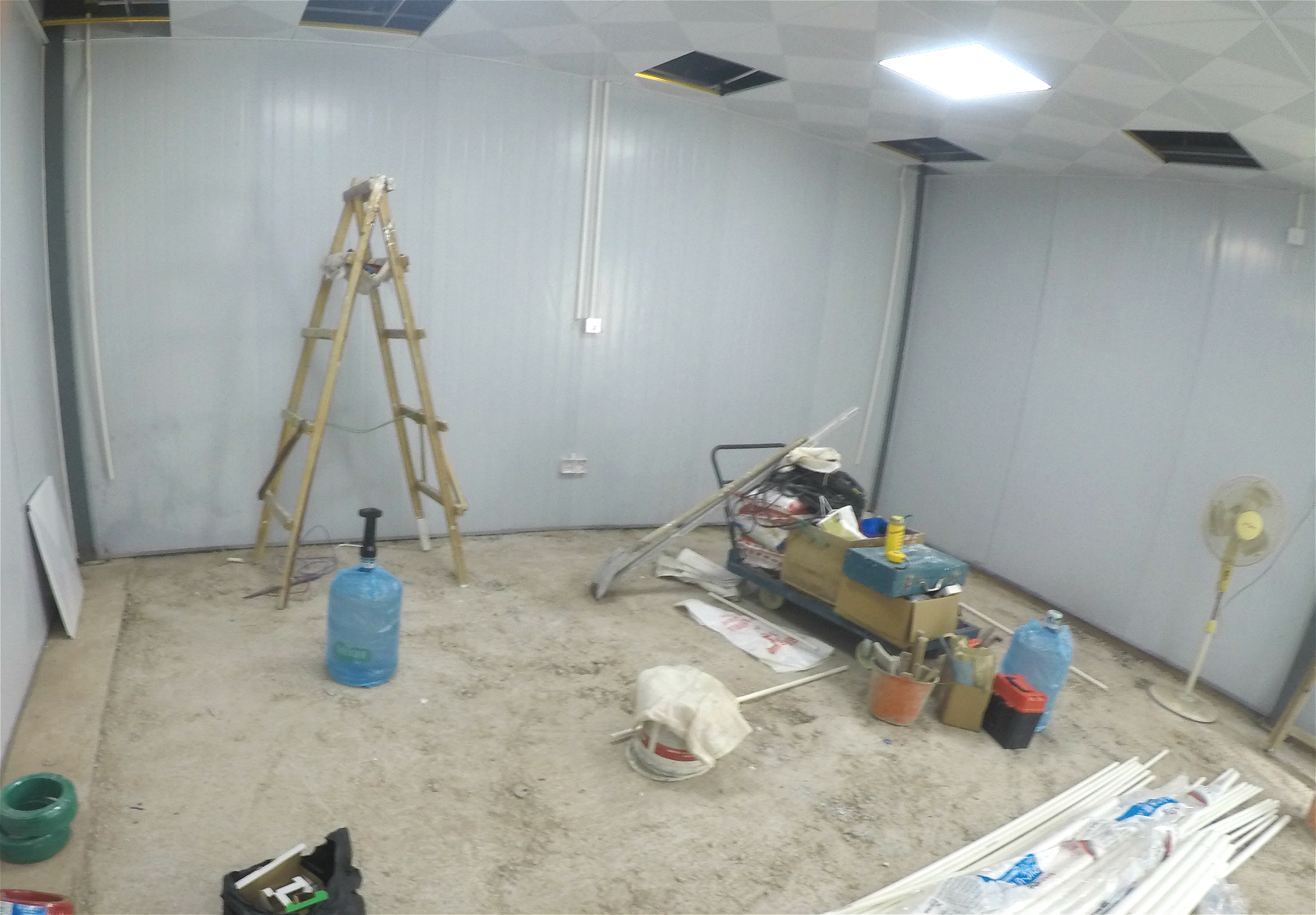 完成展廳墻身扇灰工作