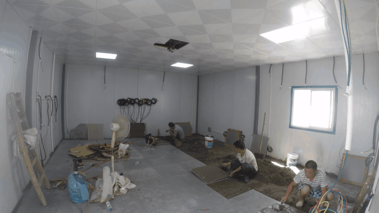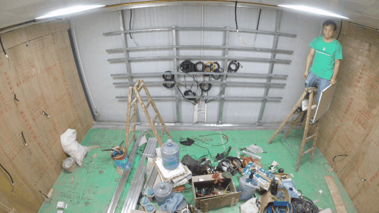 緊接著是封墻及搭建龍骨架,展廳初現(xiàn)雛形