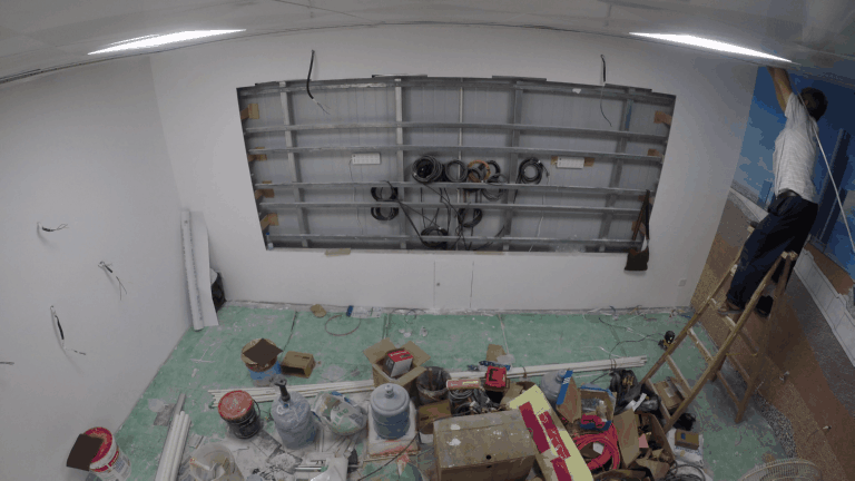 LED電視機(jī)安裝,至此,車陂路展廳主要施工工作基本完成