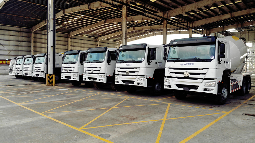 整齊劃一的水泥罐車