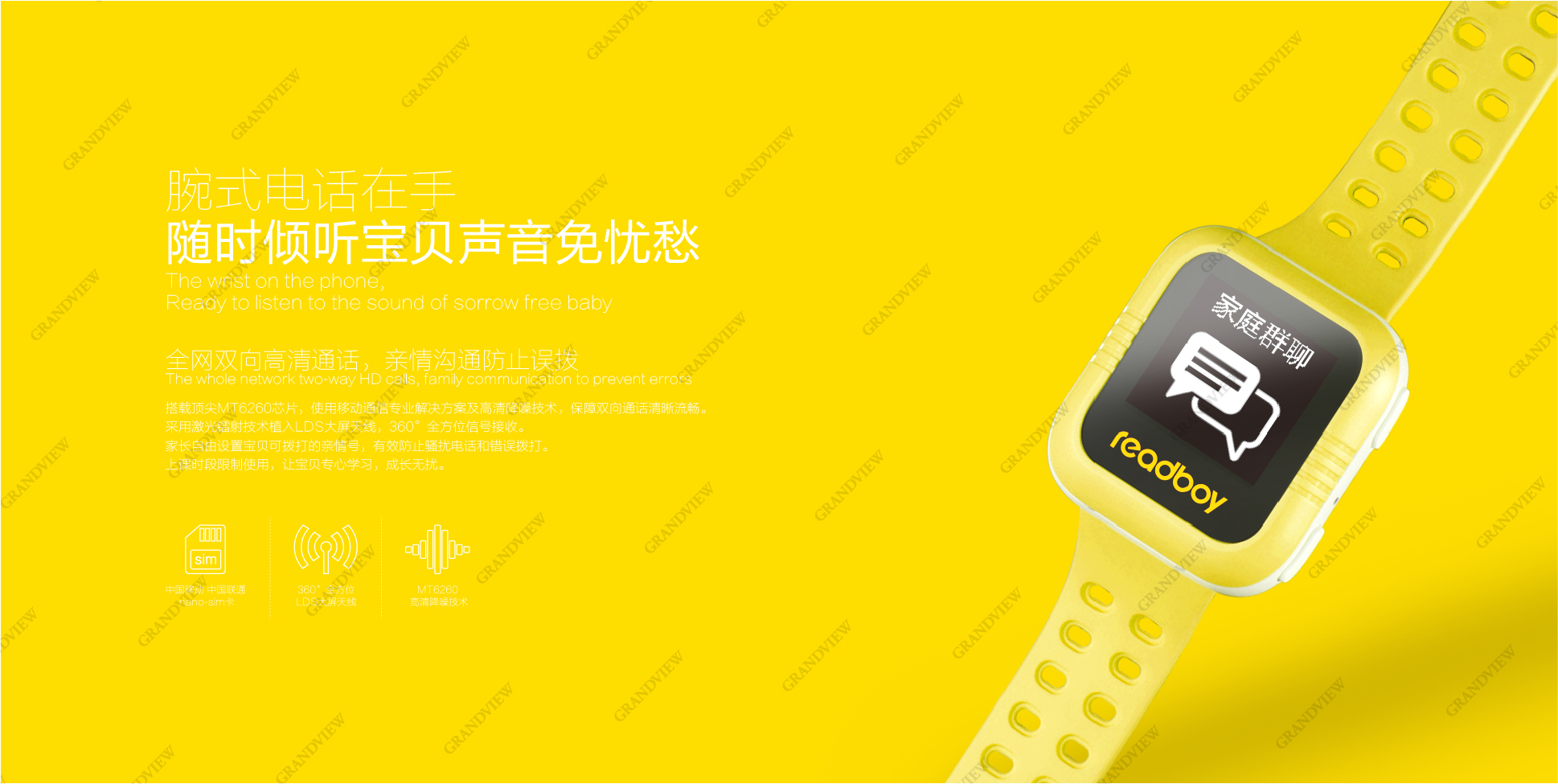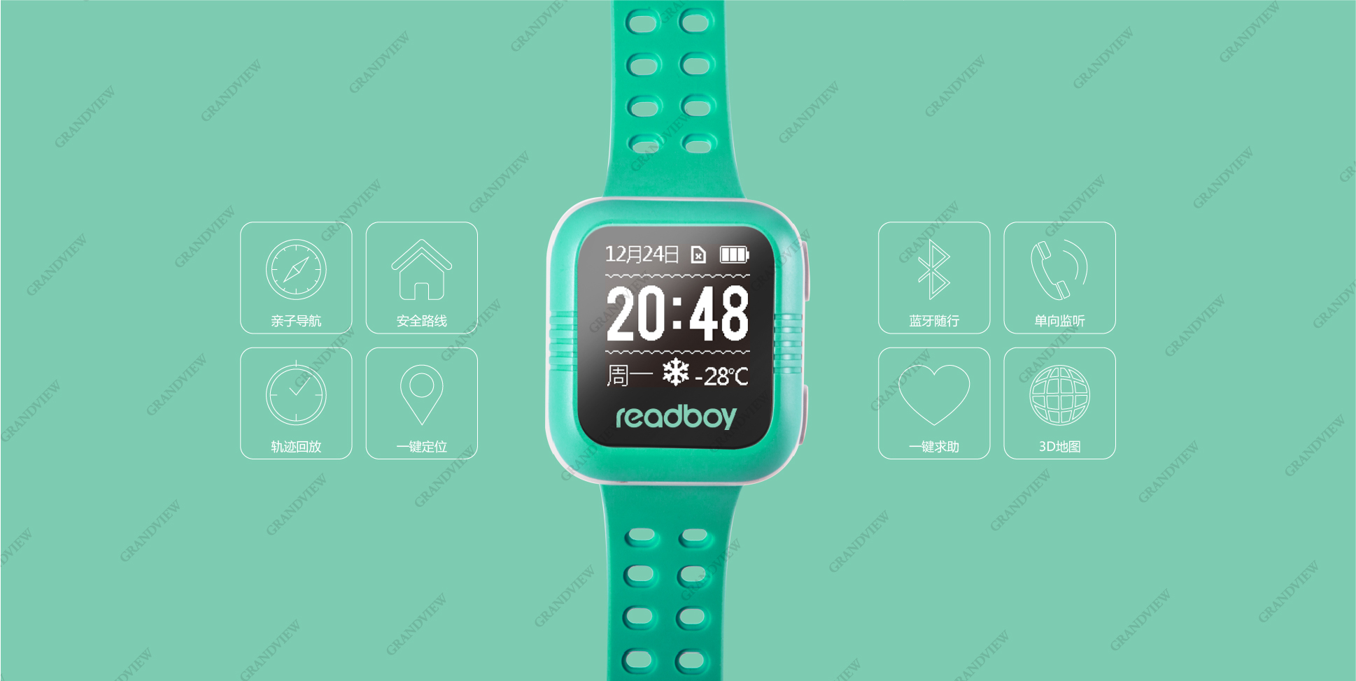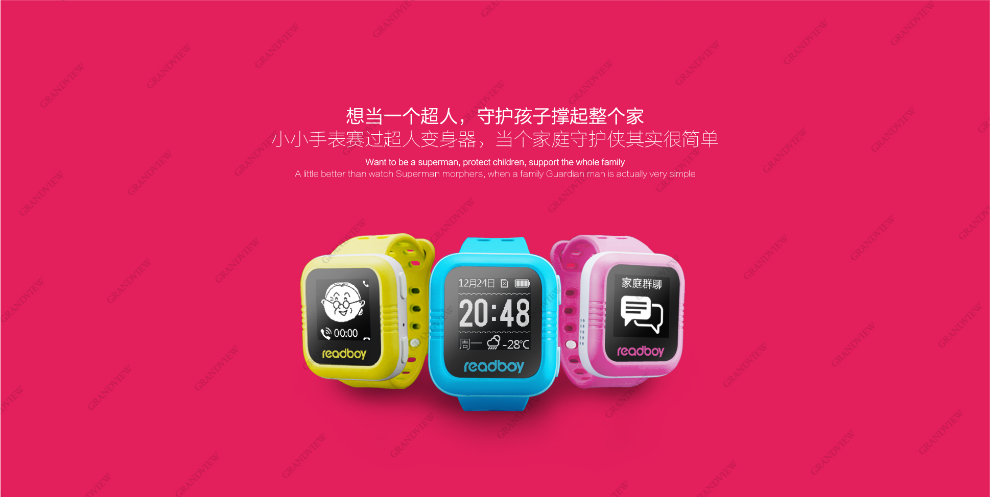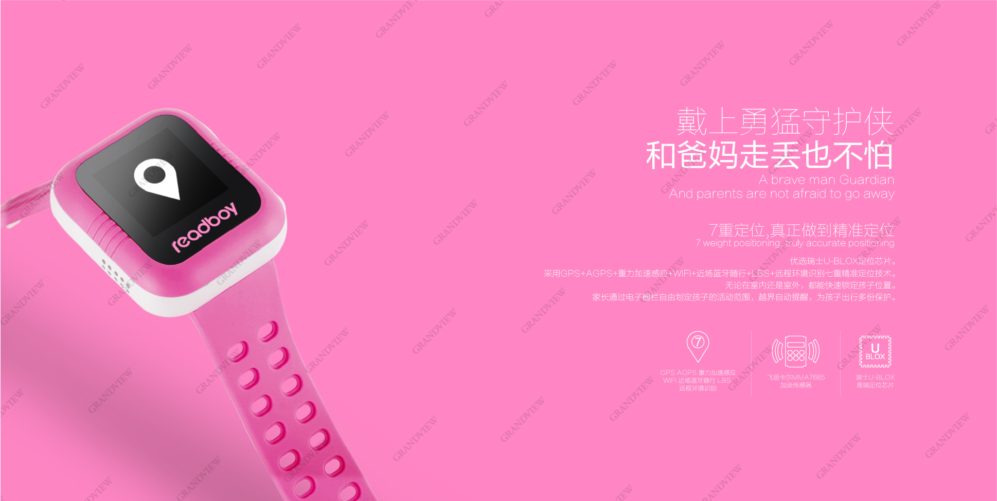 全角度的手表圖片設計,將新產品能通過手表將孩子位置與家長APP連接、真正意義上實現精準定位、保護孩子安全的重要特點直觀展現在消費者眼前,有力塑造了讀書郎"教育電子專家與領導者"的企業形象。