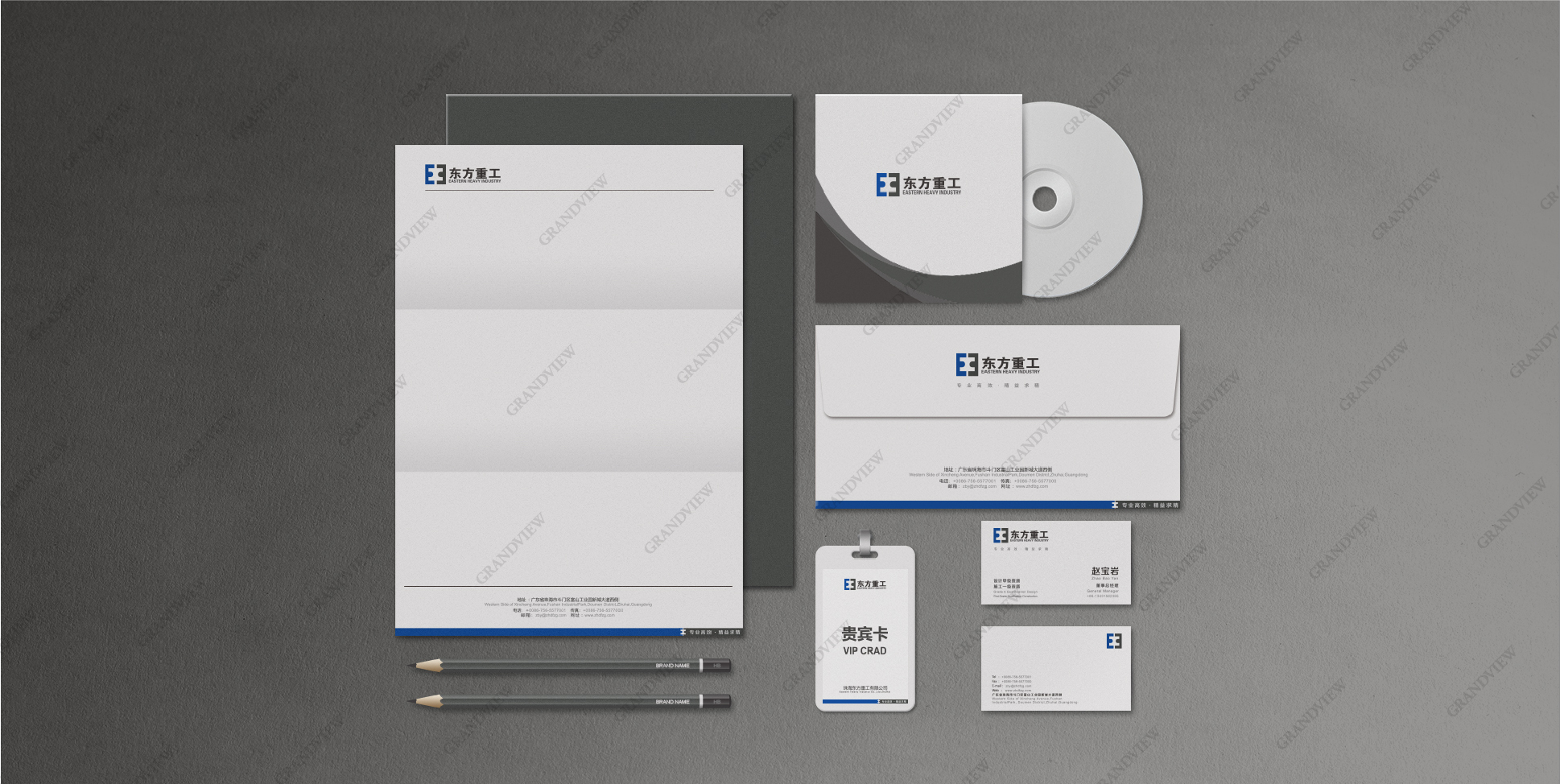 廣角通過梳理所有業務單元的內容,建立了方便延展使用的品牌架構和VI系統。LOGO以象征穩定性的深藍色、深灰色作為主色調,著眼于簡約明了的辨識性標志,同時采用鏡像創意,選取Eastern首字母E之鏡像形成“工”字,個體形態上中西結合,整體視覺效果詮釋“東方重工”的品牌名稱。