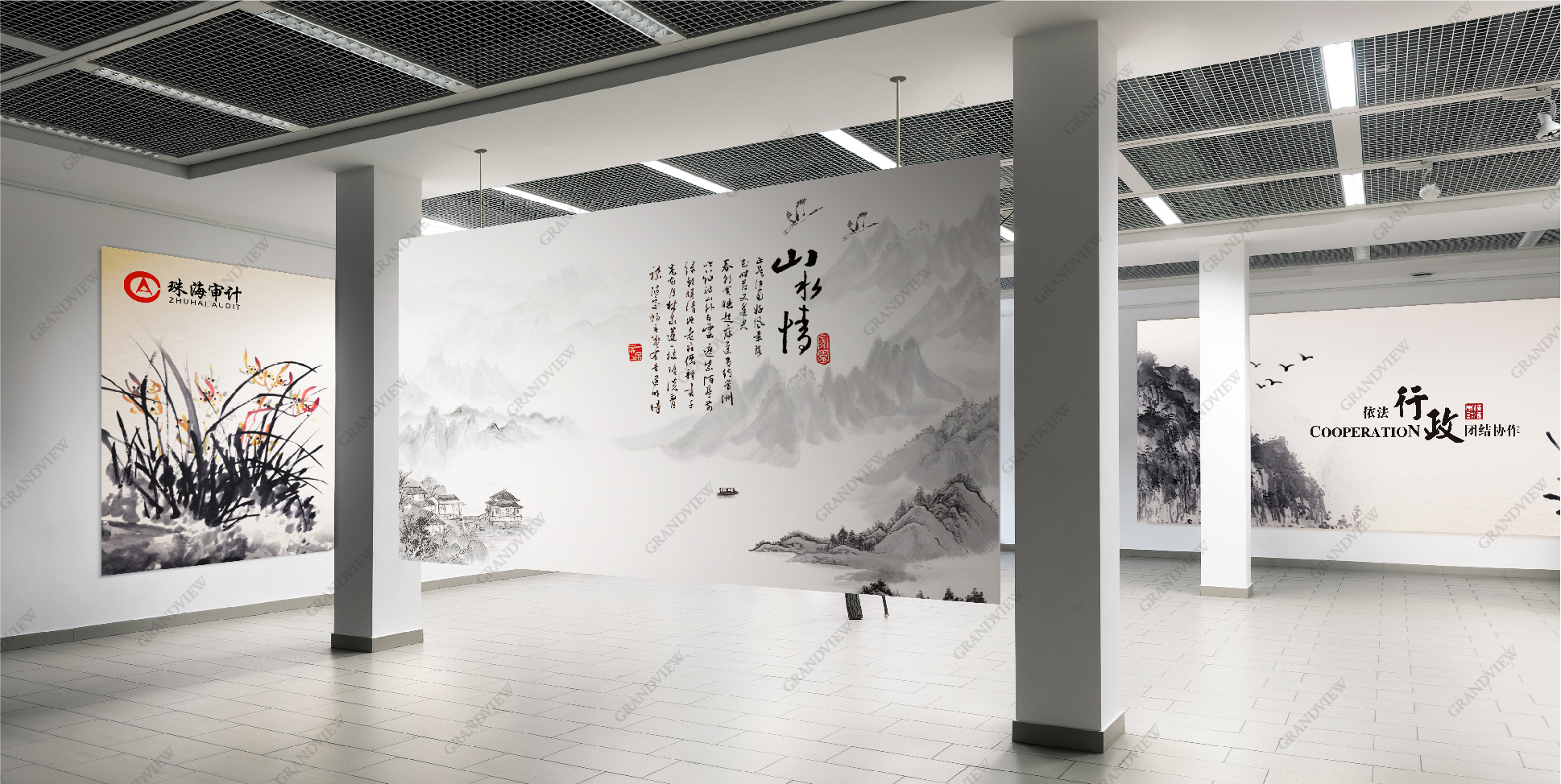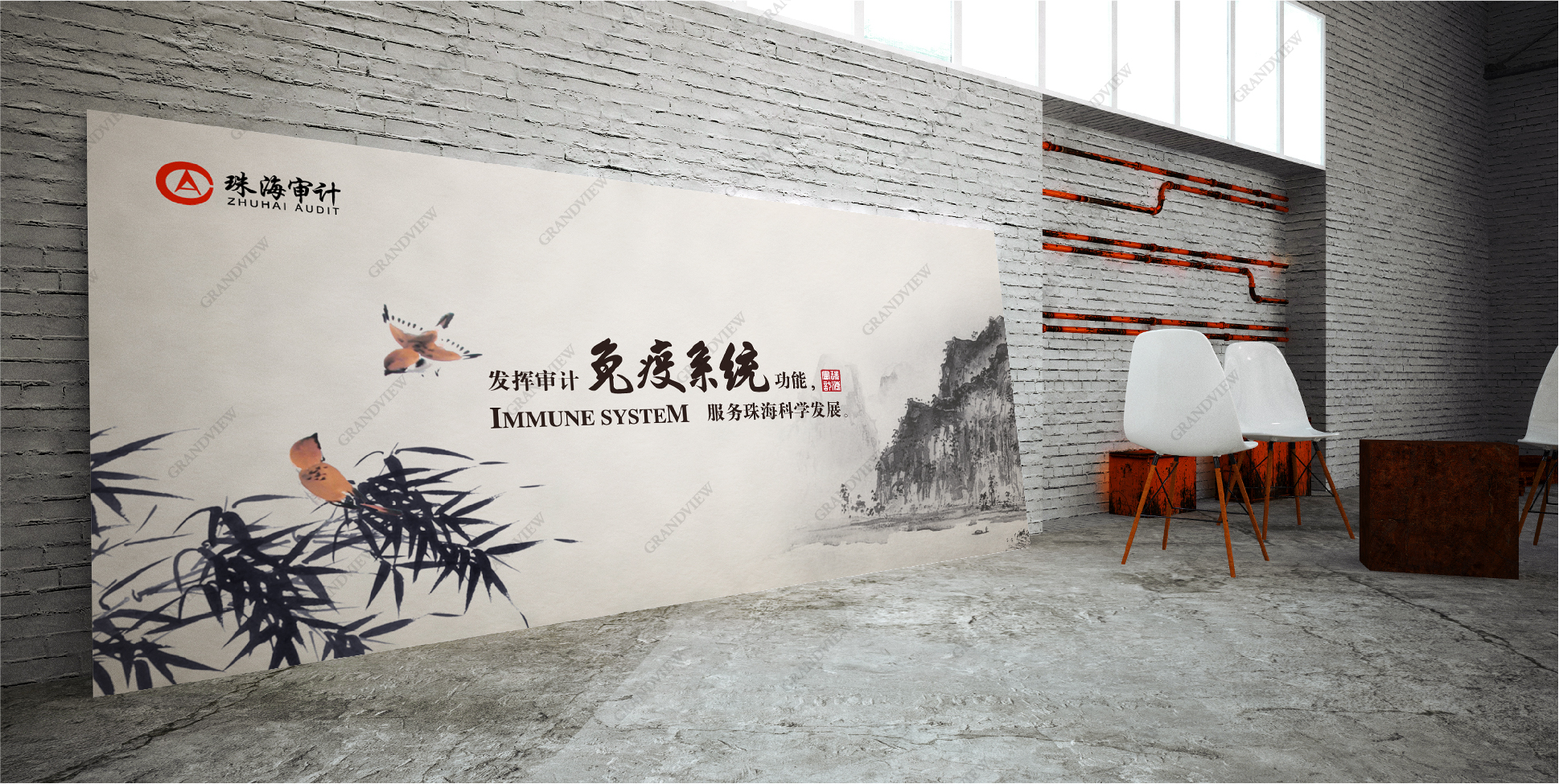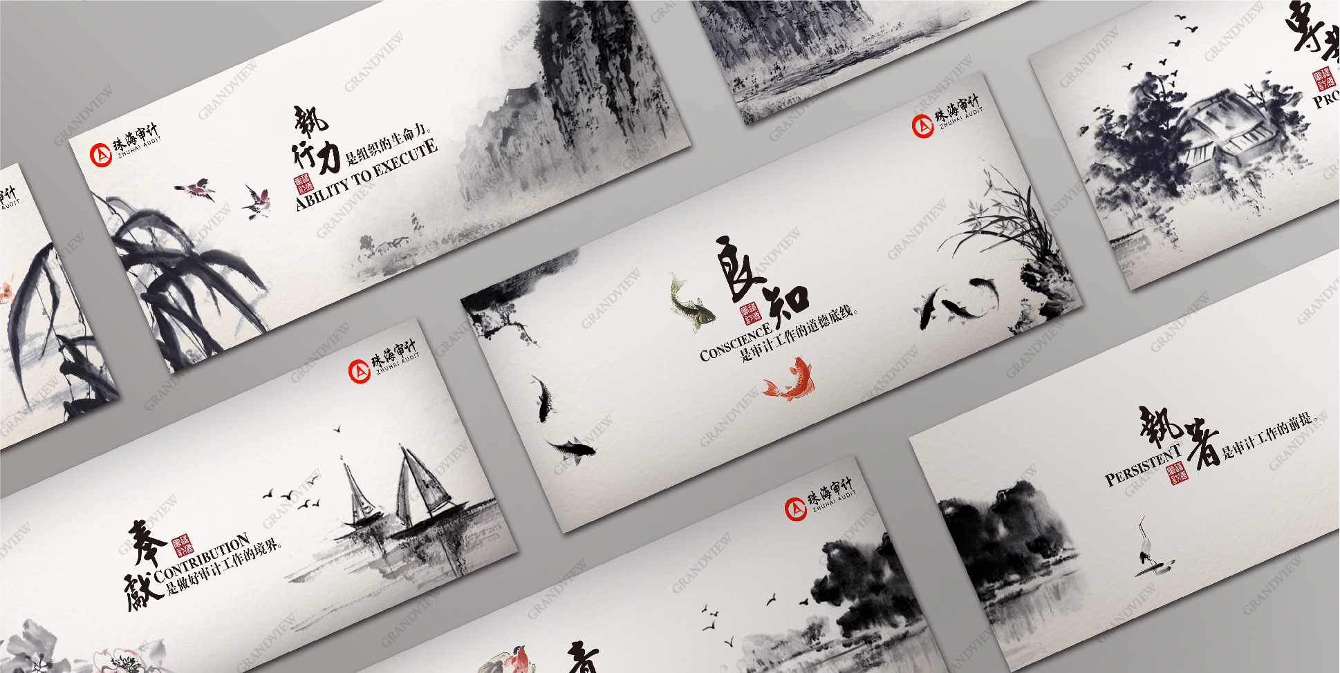當(dāng)看到一幅極具人文古韻的水墨畫時(shí),為珠海市審計(jì)局與藝術(shù)聯(lián)結(jié)點(diǎn)苦苦尋覓無果的廣角設(shè)計(jì)師茅塞頓開。于是著力于對民族的審美意識(shí)和審美心理的把握,站在珠海市審計(jì)局的角度進(jìn)行綜合設(shè)計(jì)。